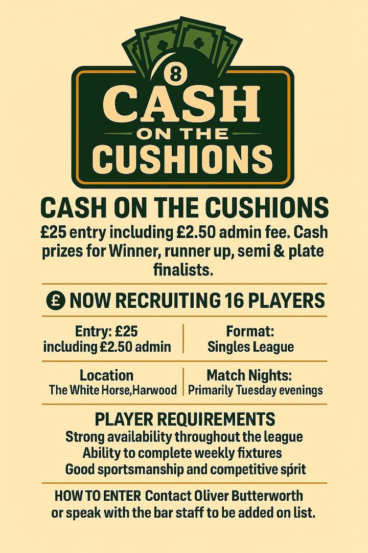 Then take part in the best quiz everrrr, and a good luck to our ladies darts team its their first match for us......more info to come on the POOL COMPETITION but you can ask staff for details x